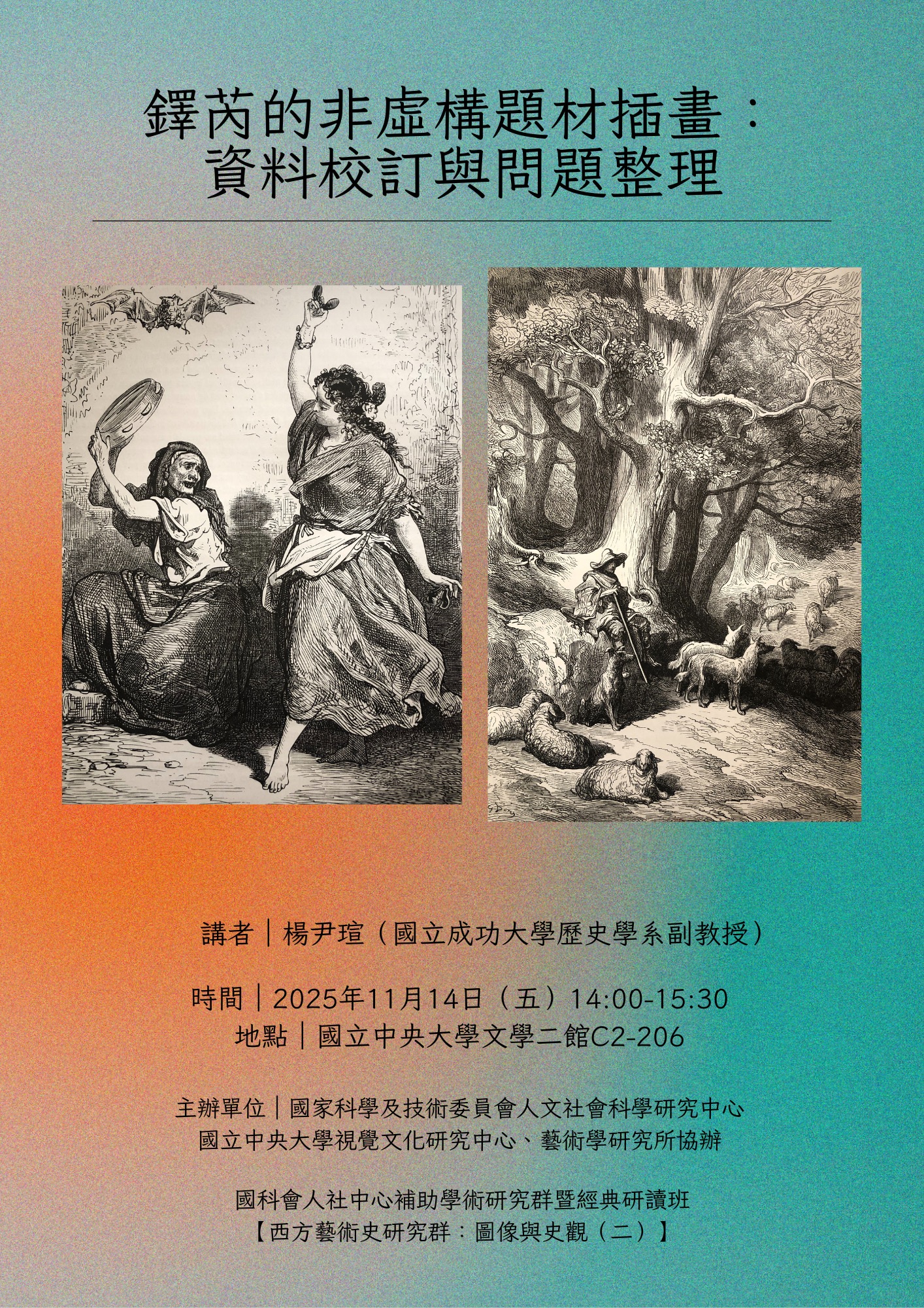 活動訊息 2025/10/23 【專題講座】鐸芮的非虛構題材插畫: 資料校訂與問題整理 講題:鐸芮的非虛構題材插畫: 資料校訂與問題整理講者:楊尹瑄副教授(國立成功大學歷史學系)時間:2025年11月14日(五)14:00-15:30地點:中央大學文學院二館 206教室
